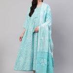 Blue Floral Printed Flared Maternity Dress With Dupatta