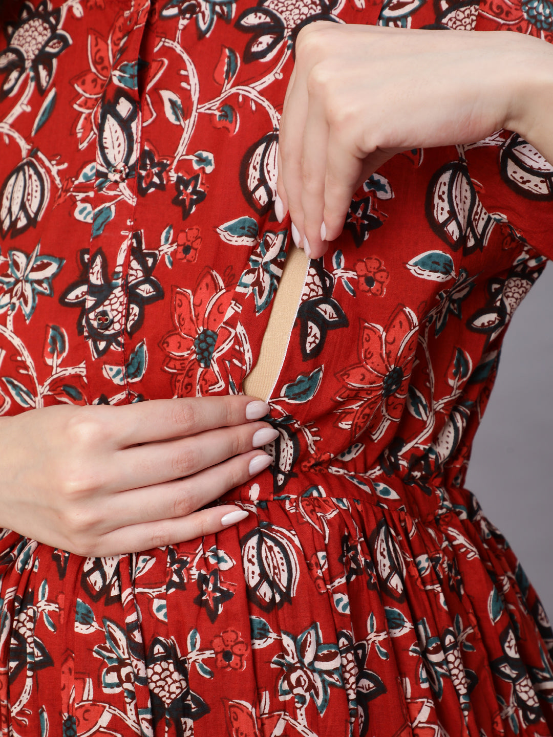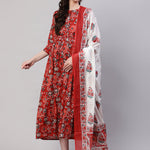 Maroon Printed Flared Maternity Dress With Dupatta