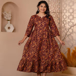 Burgundy Gold Printed Floral Print Tiara Dress