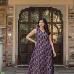 Burgundy Abstract Printed Sleeveless Midi Dress