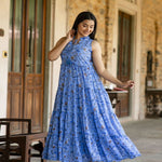Blue Floral Printed Sleeveless Georgette Dress