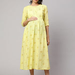 Lemon Yellow Printed Maternity Dress