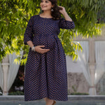 Navy Blue Printed Flared Maternity Dress