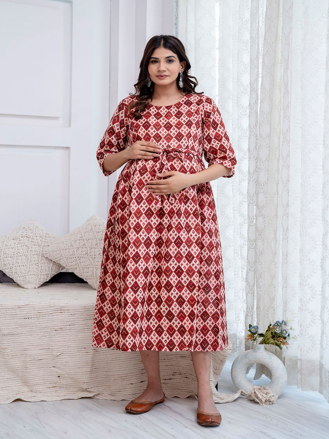 Maroon Printed Maternity Dress