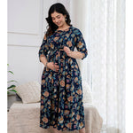 Navy Blue Printed Maternity Dress
