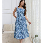 Blue Abstract Printed Flared Dress