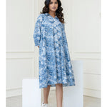 Blue Printed Flared Midi Dress