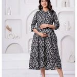 Black Printed Flared Maternity Dress