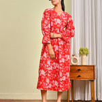 Women Red Printed Flared Dress