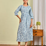 Women Blue Printed Flared Dress