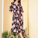 Burgundy Floral Printed Dress for Women