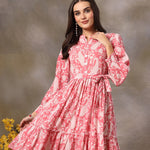 Pink Paisley Printed Cotton Tiered Dress