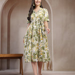 Green Floral Printed Cotton Flared Dress