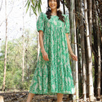 Green Paisley Printed Cotton Tiered Dress
