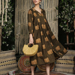 Cotton Calf Length Printed Full Sleeve Shirt Collar Flared Dress