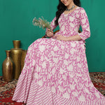 Women Rayon Printed Ankle Length Round Neck Tiered Kurta