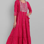 Fuchsia Rayon Festive Wear Embroidered Tiered Long Dress