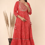 Maroon Printed Embroidered Mirror Work Sequin Cotton Flared Dress