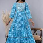 Sky blue Printed Embroidered Mirror Work Sequin Cotton Flared Dress