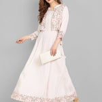 Off White Rayon Printed Flared Dress