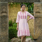 Pink Cotton Dobby Festive Embroidered Tiered Dress