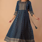 Navy Rayon Festive Wear Foil Printed A-Line Long Dress