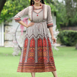 Off-White Georgette Festive Wear Printed Flared Dress