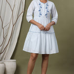Sky Blue Swiss Dot Festive Embroidered Tiered Dress