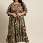 Mehendi Green Rayon Festive Wear Embroidered & Printed Tiered Dress