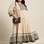 Ivory Cambric Festive Wear Printed Tiered Dress