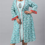 Sky Blue Rayon Festive Wear Embroidered & Printed Flared Dress