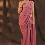 Rosegold Georgette Embellished Saree Style Dress