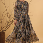 Black Chiffon Printed Flared Dress