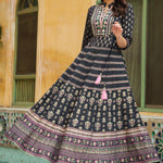 Darkblue Rayon Embroidered Flared Dress