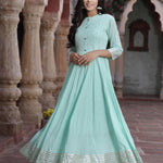 Sky Blue Cotton Solid Flared Dress