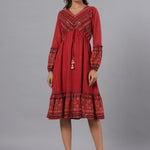 Rust Georgette Printed Midi Dress