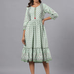 Sage Green Rayon Printed Jacket Style Midi Dress