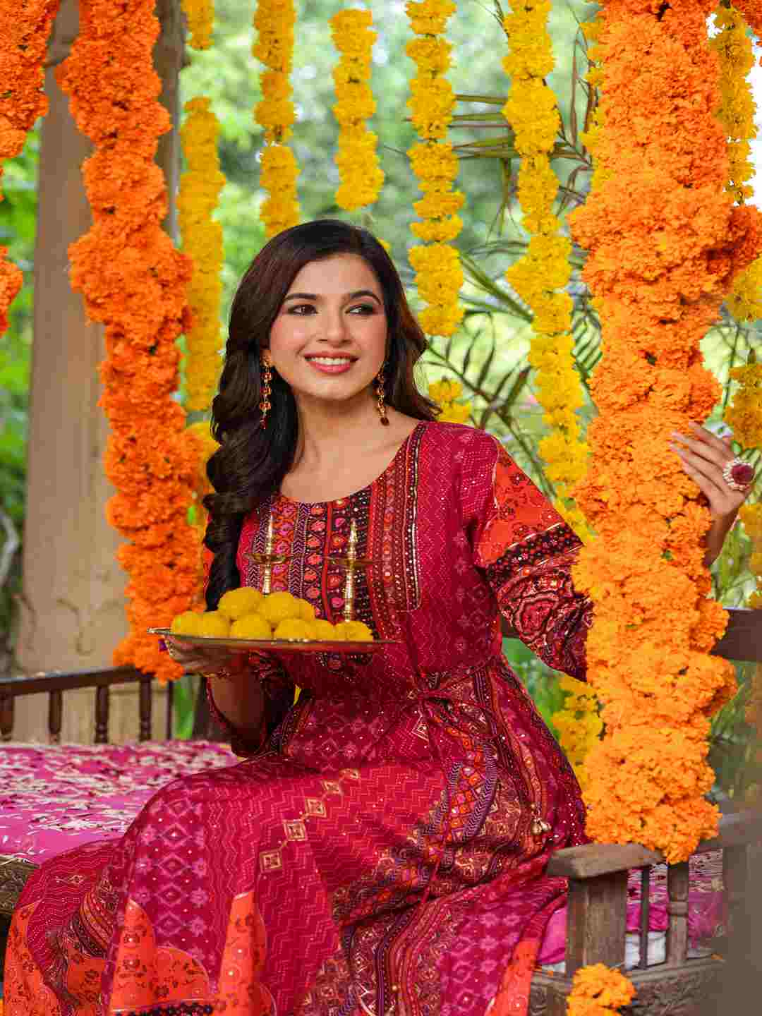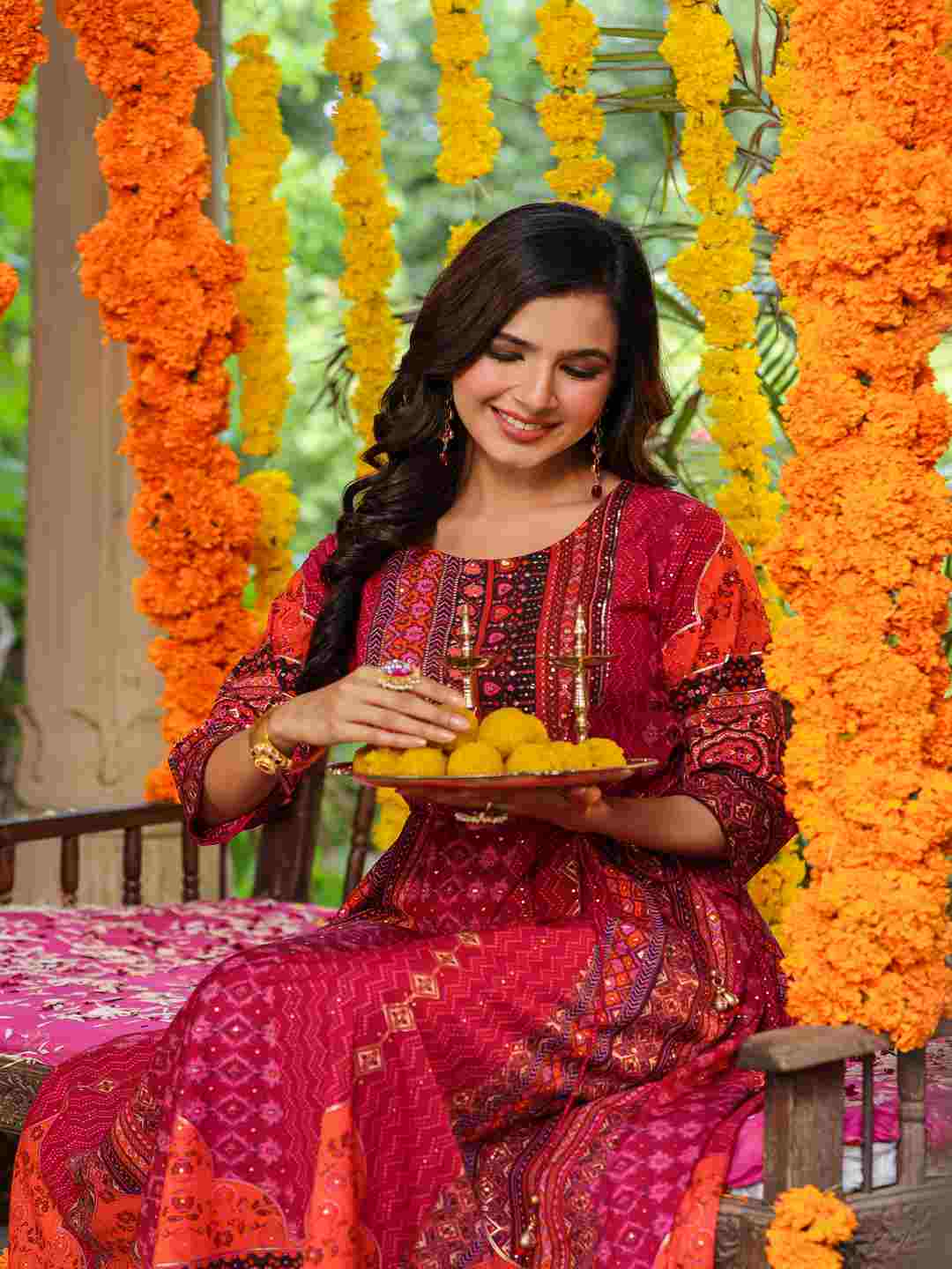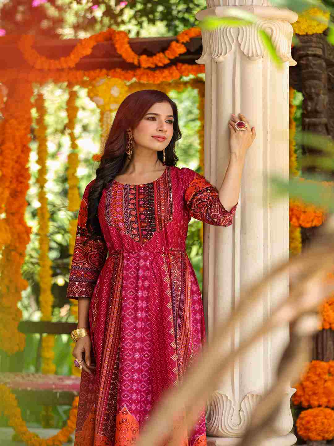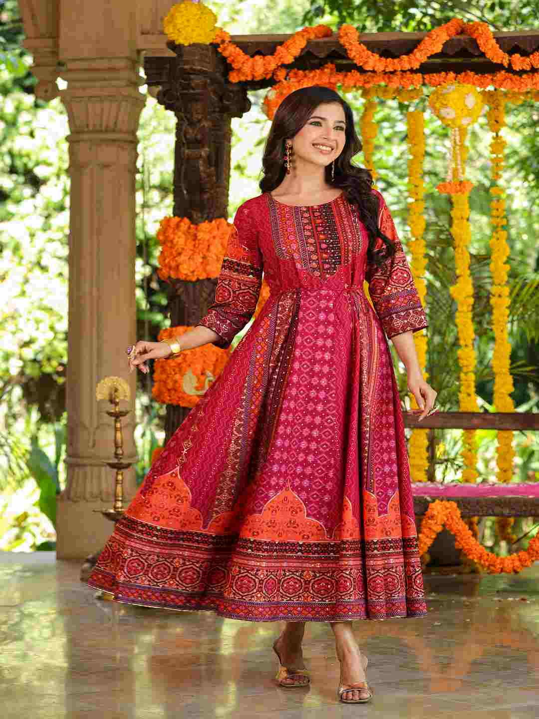 Plum Silk Printed Maxi Dress