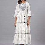 Off-White Cotton Dobby Embroidered Tiered Maxi Dress