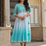 Teal Georgette Embroidered Maxi Dress