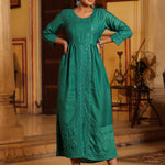 Teal Festive Embroidered Flared Dress