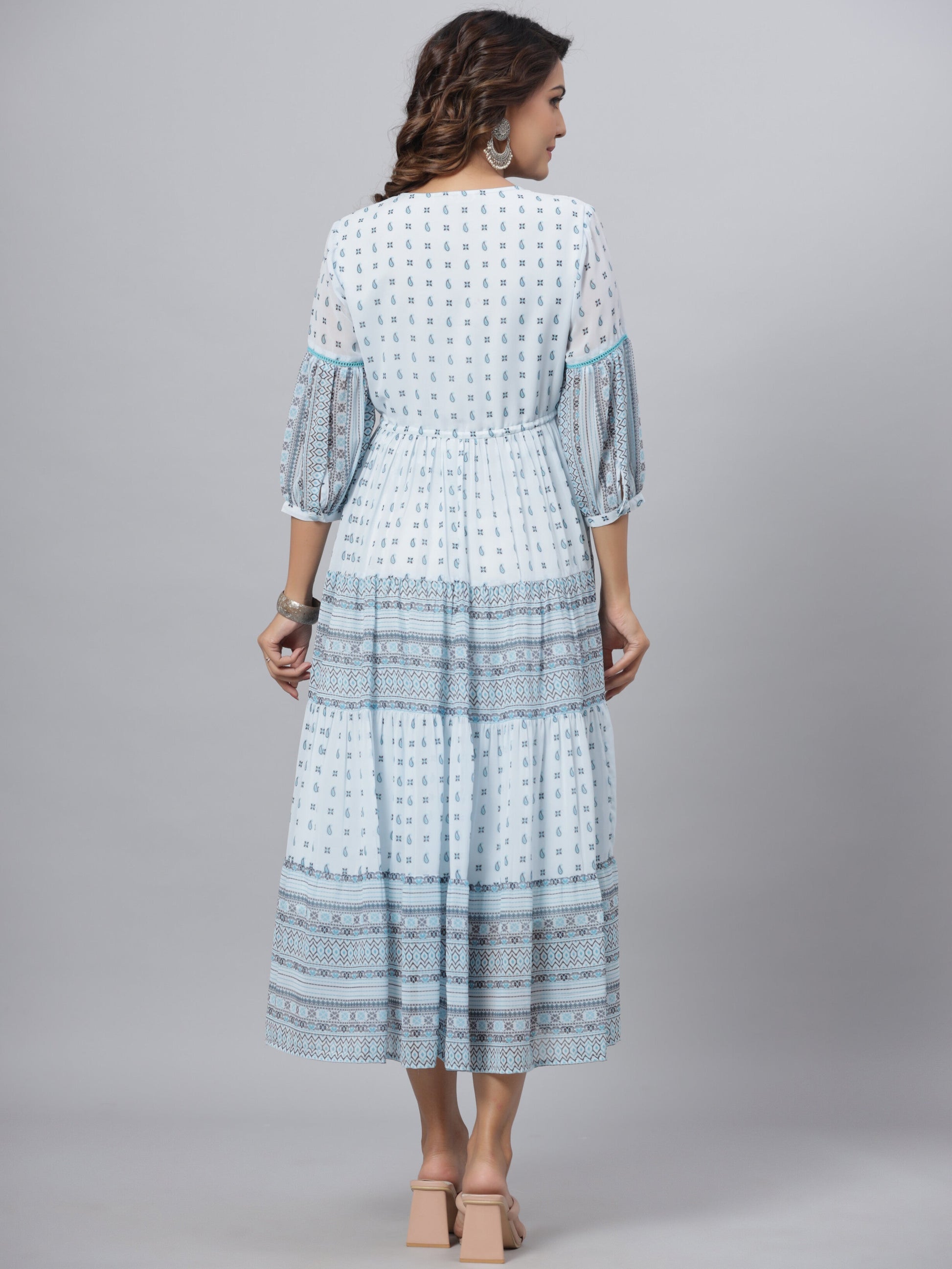 Skyblue Georgette Printed Flared Dress