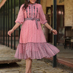 Pink Georgette Printed Flared Dress