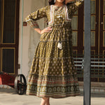 Olive Cotton Cambric Printed Tiered Maxi Dress