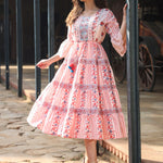 Pink Cotton Cambric Floral Printed Tiered Maxi Dress