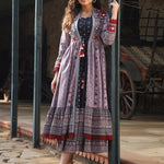 Lavender Cotton Cambric Tribal Printed Maxi Dress With Jacket