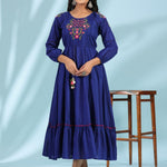 Indigo Floral Embroidered Cotton Dobby Tiered Maxi Dress With Kaudis & Colorful Tassels