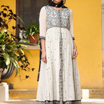 Off-White & Black Cotton Embroidered Anarkali Dress With Jacket & Tie-Dye Dupatta
