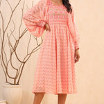 Peach Ethnic Motif Printed Georgette Midi Dress With Sequins Work