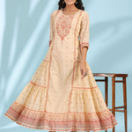 Festive Ivory Ethnic Motif Printed Tiered Dress With Sequins & Beadwork
